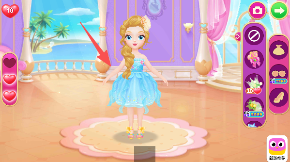 1、点击公主换装按钮进入梦幻衣橱,给莉比搭配一套最闪亮的泳池派对礼服。