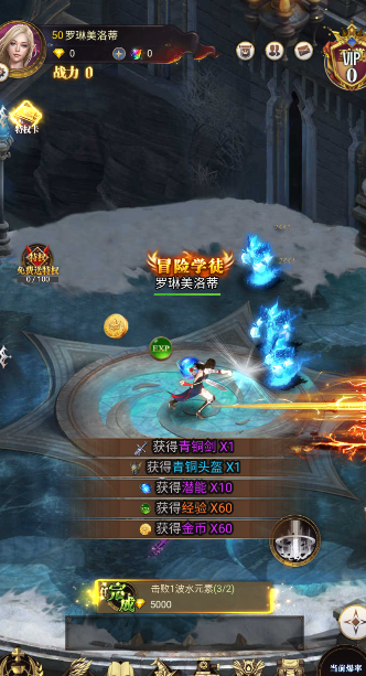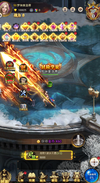 1、选择近战女战士职业开启主线,通过挂机地图获取基础装备与资源。