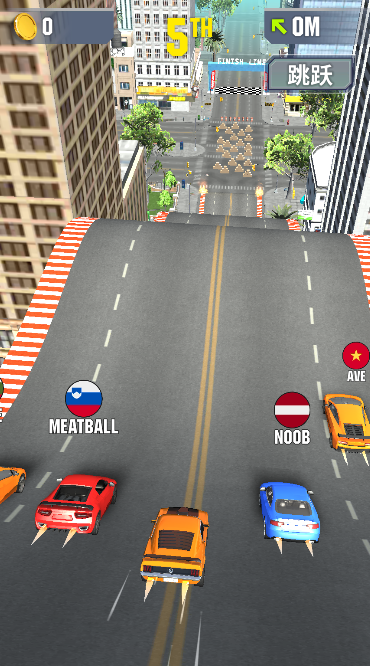 2、利用赛道缓冲区调整车身姿态,在爬坡路段提前加速冲坡。