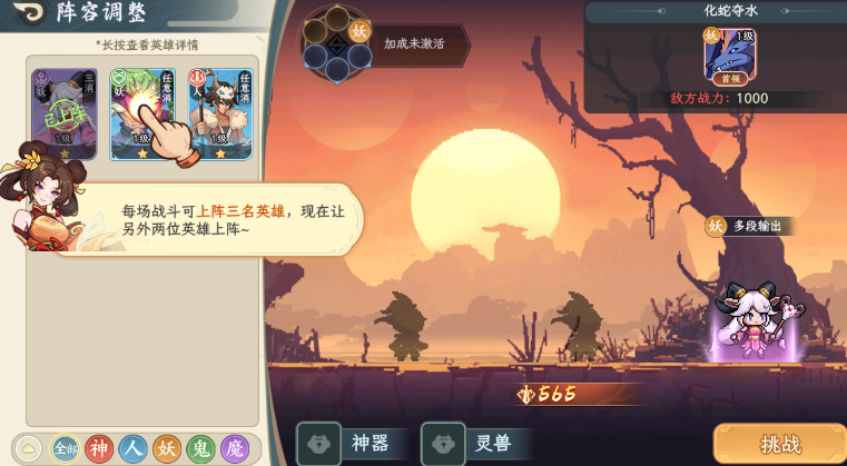 2、通过消除怪物积攒能量,适时释放技能应对战场变化。