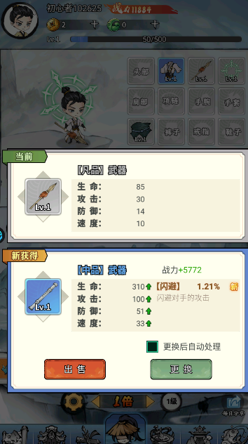 2、智能挂机系统优化离线收益,8小时离线产出等同于全天资源,支持预设装备方案自动切换,碎片化时间也能稳步推进修行。