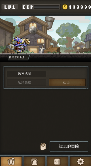 2、点击主界面人物图标,选择地牢一层普通难度,勾选自动托管后点击出击,开启自动战斗与资源获取流程。