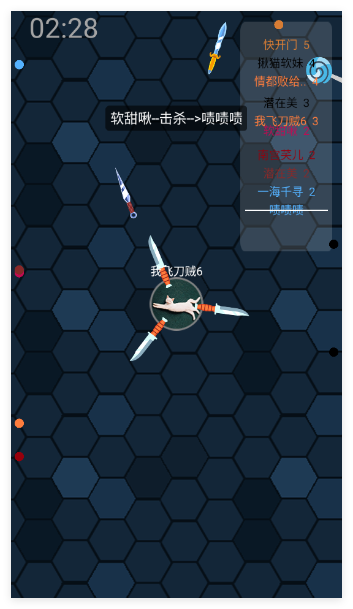 1、改编自抖音热门游戏《我飞刀玩得贼6》,延续经典io类竞技玩法的同时,加入独特规则设定,带来耳目一新的游玩体验。
