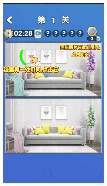 3、内置贴心提示功能,遇到难以发现的差异时,可使用提示道具快速定位,平衡游戏挑战性与游玩舒适度。