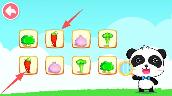 2、玩法很简单,用手指找一找,把相同的蔬菜连到一起,它们就会“咻”地消失。