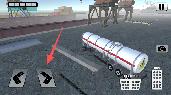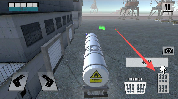 2、右手负责油门和刹车,用右下角的按键控制这个大家伙是慢慢挪还是猛地冲。