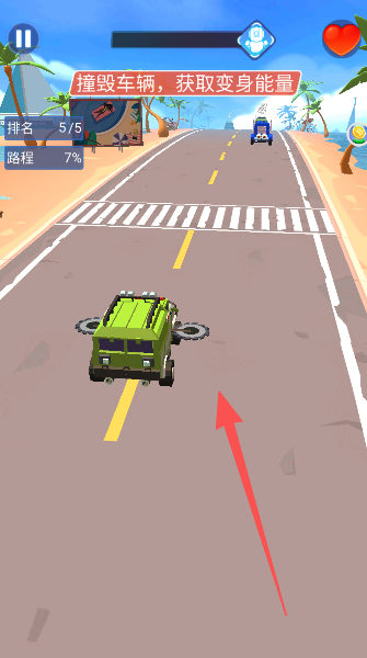 2、在赛道上别光顾着跑,瞅准机会撞毁对手车辆,就能吸收能量准备酷炫变身。
