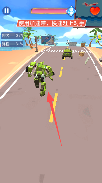3、不管是用赛车形态冲刺,还是变身机甲清障,最终目标都是第一个冲向终点线。