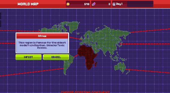 1、开局选择中东等易感染区域投放初始病毒,优先感染人群密集地带,收集金币解锁基础僵尸兵种与感染加速能力。