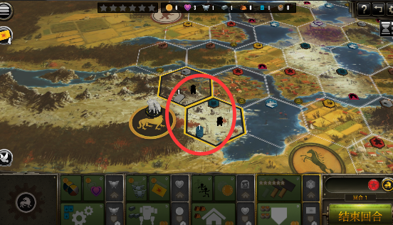 1、选择俄维埃联盟等势力开局,在初始领地部署工人开展农业生产。