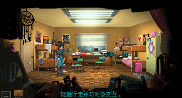 2、按住地面显示可互动物件,结合对话线索破解数字密码获取内容。