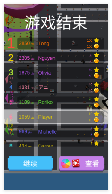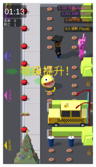 2、进入美食世界的对战场景,通过吞噬场景中的食物与小型对手,提升自身的体积与战力。