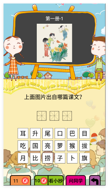 2、进入关卡查看展示的课本标志性图片,结合所学知识回忆图片源自哪篇课文,输入正确答案。