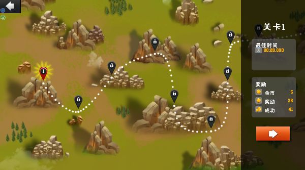1、在选关地图上,点一下右边的箭头,就能跳到第一关的起点,准备好开始你的山地狂飙啦。