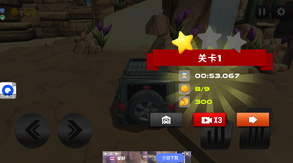 2、比赛开始后,狠狠按住右边的油门踏板,控制你的越野车沿着山路一路向前冲。