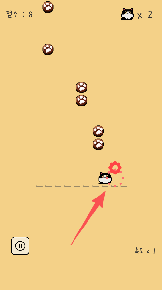 2、手指左右滑动,指挥屏幕里的小家伙接住从天而降的爪印,一个都别放过哦。