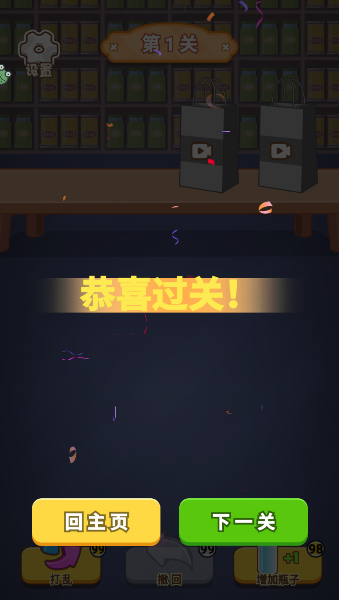 2、万一摆弄半天搞混了别着急,点一下“打乱”按钮,瓶子们立马归位,让你能重新规划,理清思路。