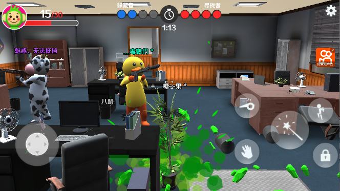 3、支持多人联机对战,可与好友组队开黑或参与团队匹配,实时互动配合增添社交乐趣,让躲猫猫玩法更具互动性。