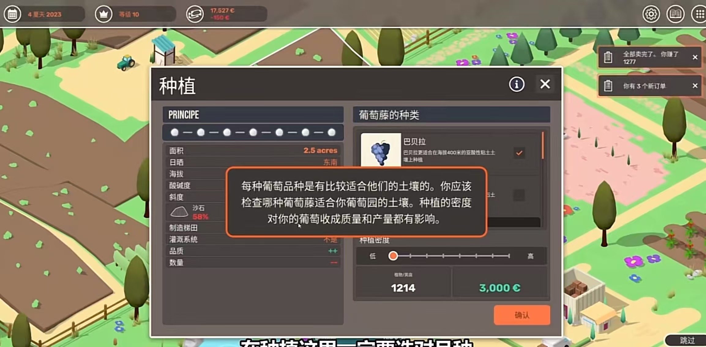 1、沉浸感拉满,治愈系手绘画风搭配田园音效,动态四季与作物生长特效,还原宁静惬意的酒庄经营氛围。