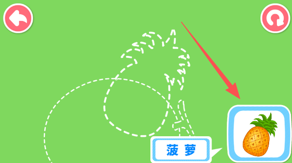 2、轻轻用手指抓住菠萝先生,把它安全地送到画着同样轮廓的“小房子”里去吧。