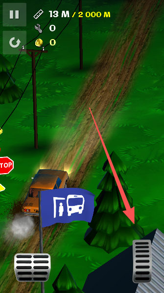 1、用你的手指稳稳按住屏幕右下角的油门键,给这辆山地出租车注入强劲的动力。