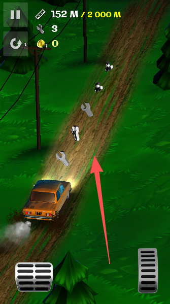 2、握紧方向盘,在蜿蜒的山路上勇敢向前冲,别忘了收集路上散落的那些有用工具哦。