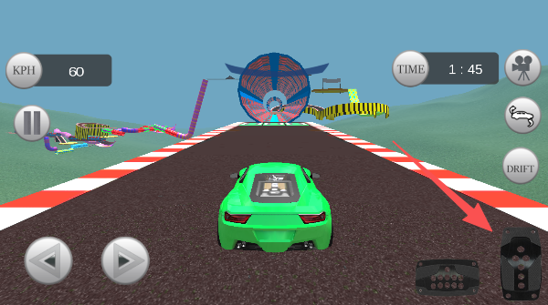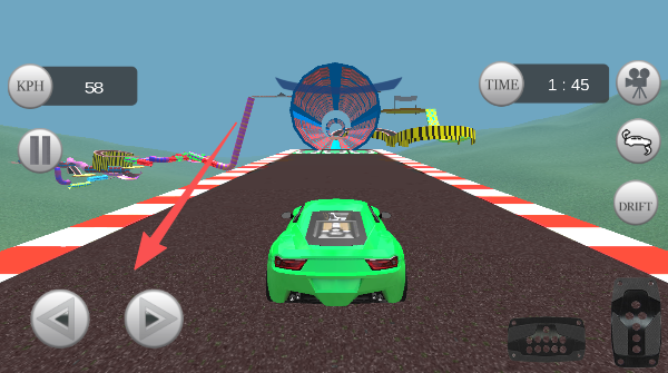 2、用左手在屏幕左下角灵活滑动,就像转动真实方向盘,精准地控制赛车过每一个弯道。