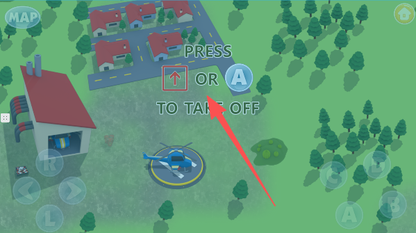 2、看到那个醒目的“A”钮了吗?点它!你的小直升机立刻哼哧哼哧离地升空。