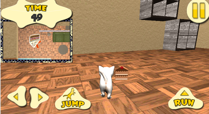 1、选择关卡进入对应家居场景,依据小地图指引方向,通过触屏或重力感应操控凯蒂猫移动跳跃,在家具缝隙与隐藏角落搜寻目标零食。