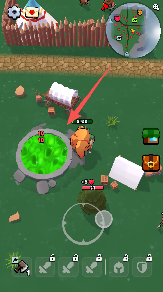 3、遇到绿色的恢复泉水时,赶紧跳进去泡一泡,补满血条还能顺便捡点周边的强化宝贝。