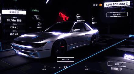 1、进入游戏选定初始赛车,熟悉虚拟摇杆操控方向,油门刹车把控行驶速度。