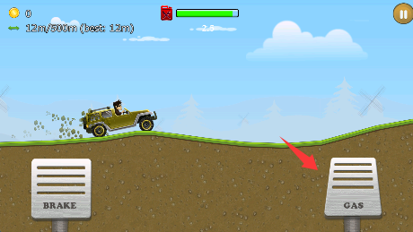 2、驶入赛道全力爬坡竞速,右下方的按键便是油门。