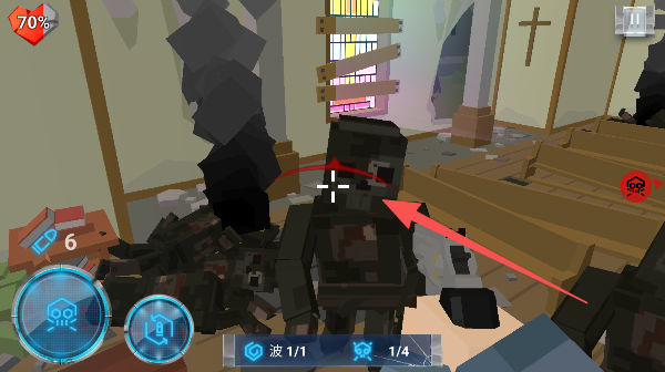 2、僵尸晃晃悠悠靠近了,快用准星牢牢锁定它们,一个都别想逃掉。