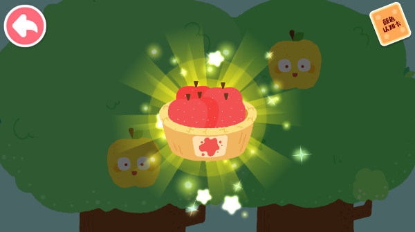 3、树上挂着圆滚滚的红苹果,把它摘下来,看,这就是我们平时吃的红苹果的颜色啦。