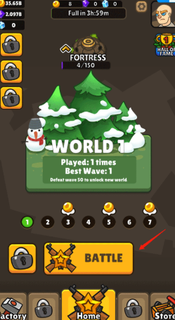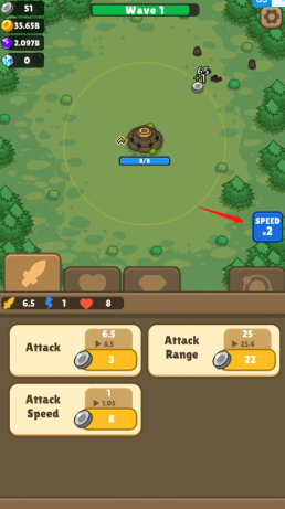 3、一把游戏结算之后,用获取的奖励升级炮塔。