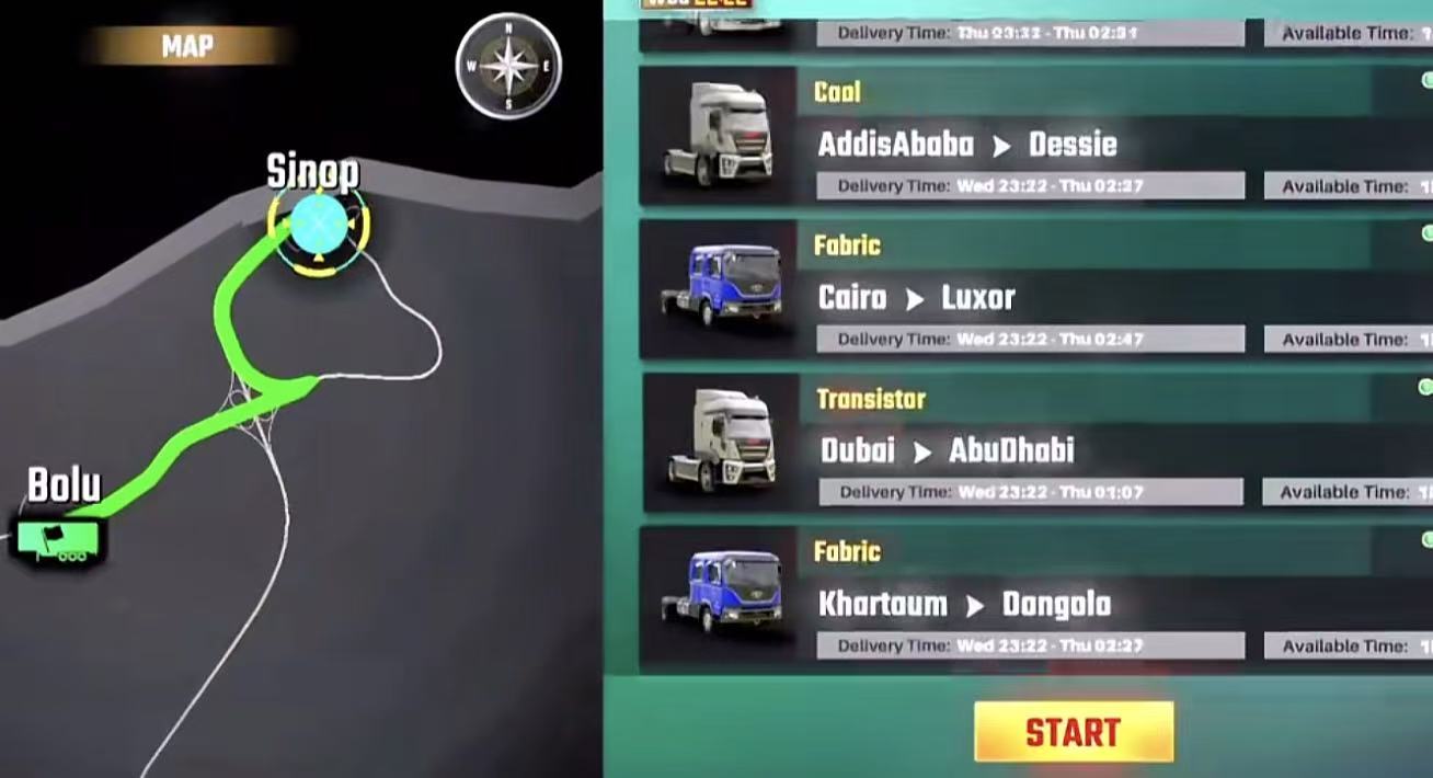 3、无强制任务压力,可自由选择运输路线与节奏,完成紧急订单、地标打卡等挑战获取额外奖励,玩法灵活无束缚。