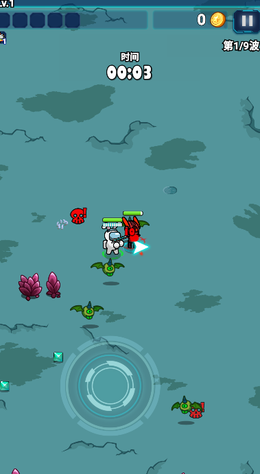 2、移动方向盘就可以移动了,方向盘指向敌人就会射击。