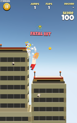 1、进入游戏解锁初始屋顶场景与基础角色,轻按屏幕蓄力触发起跳,把控蓄力时长调整跳跃高度,松开屏幕腾空,开启后空翻特技闯关首程。
