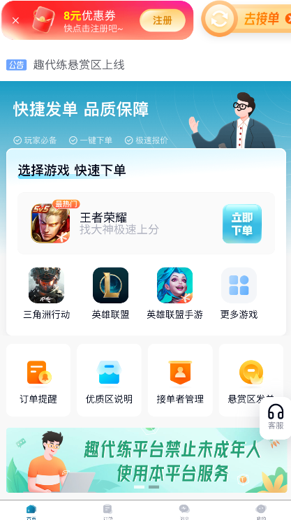 《趣代练》是一款安全高效的游戏代练交易平台,聚焦 “省心委托 + 技能变现” 双向需求,覆盖王者荣耀、英雄联盟等热门游戏。委托者可发布升级、资源收集等需求,大神凭借技能接单变现,平台提供第三方担保、全程录屏监控等安全机制,0手续费保障收益,支持支付宝与银行卡快速提现,在规范交易流程中化解信任危机,让委托者轻松获取成果,让技能者灵活实现价值,开启便捷无忧的游戏代练交易之旅。