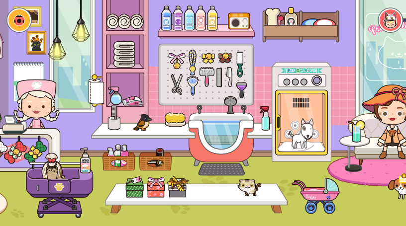 2、这里点击了一家宠物医院,里面有各式各样的宠物清洗工具。