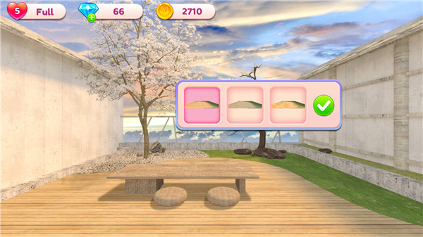 ①突破传统消除游戏框架,独创"消除获取资源→装饰提升属性→解锁新区域"的循环系统。每完成10个三消关卡可激活1次建筑设计权限,使用樱花能量石可召唤稀有景观组件。