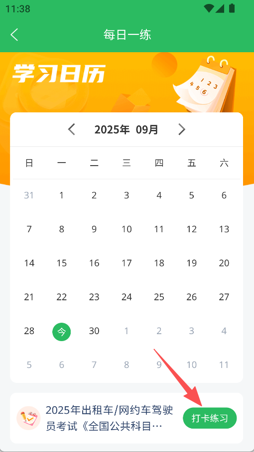 1、聚焦网约车与出租车驾驶员考试,设置每日一练板块,搭配学习日历,便于开展打卡式练习,助力规划备考节奏。
