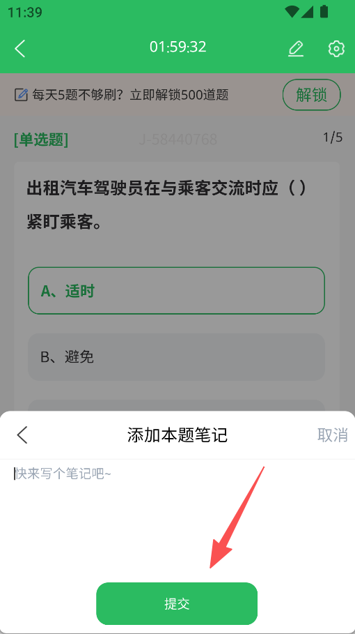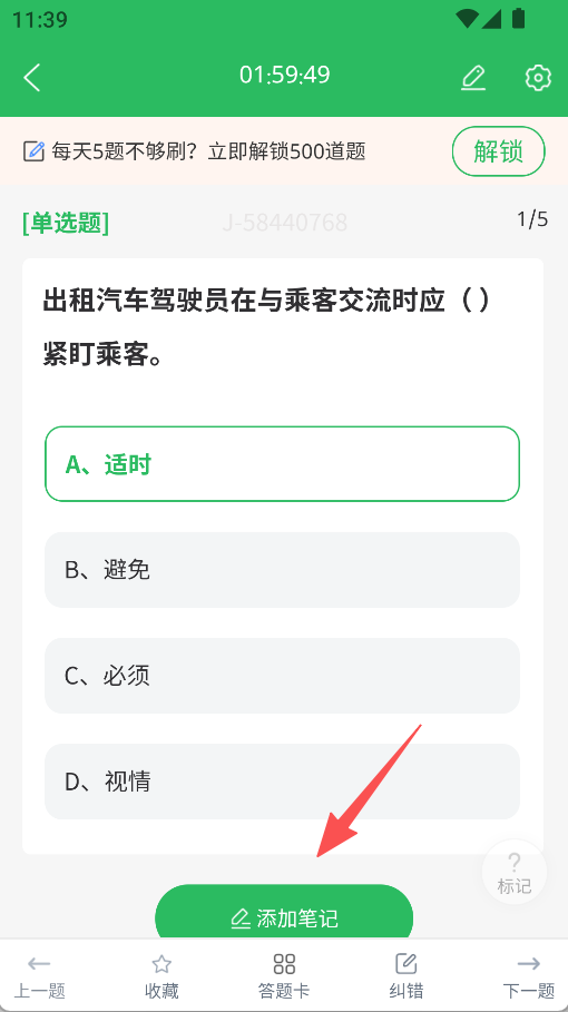 2、添加笔记功能操作便捷,在答题界面即可快速进行,方便及时记录对题目或知识点的理解,加深学习印象。