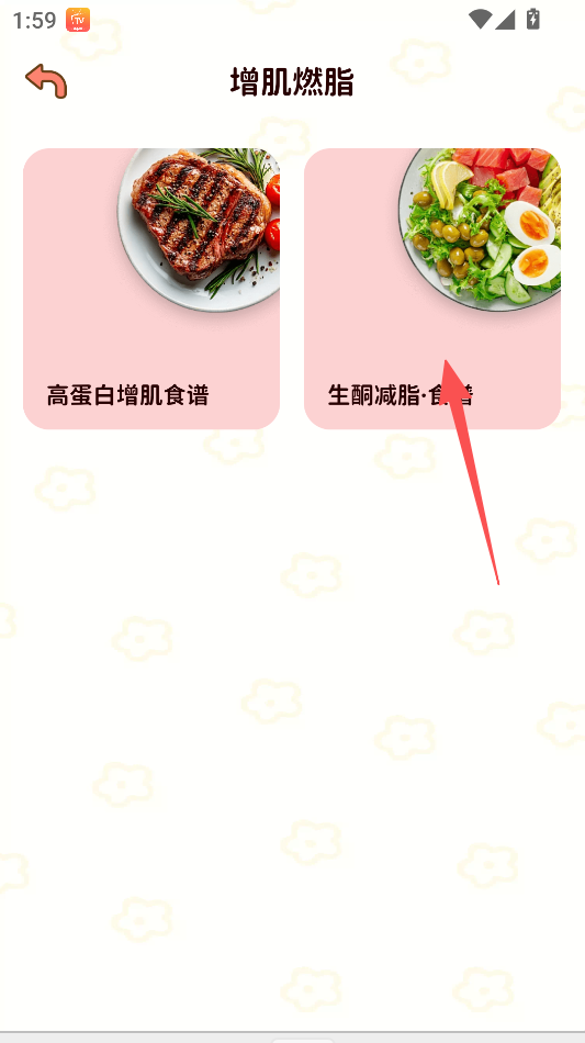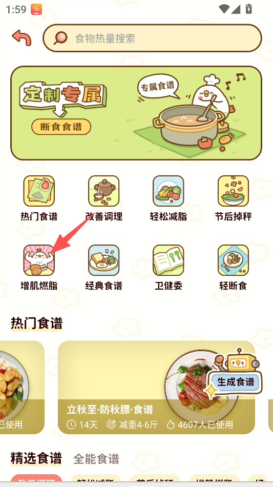 3、界面引导清晰,操作路径流畅,方便快速找到并使用所需减脂增肌食谱,提升便捷性。