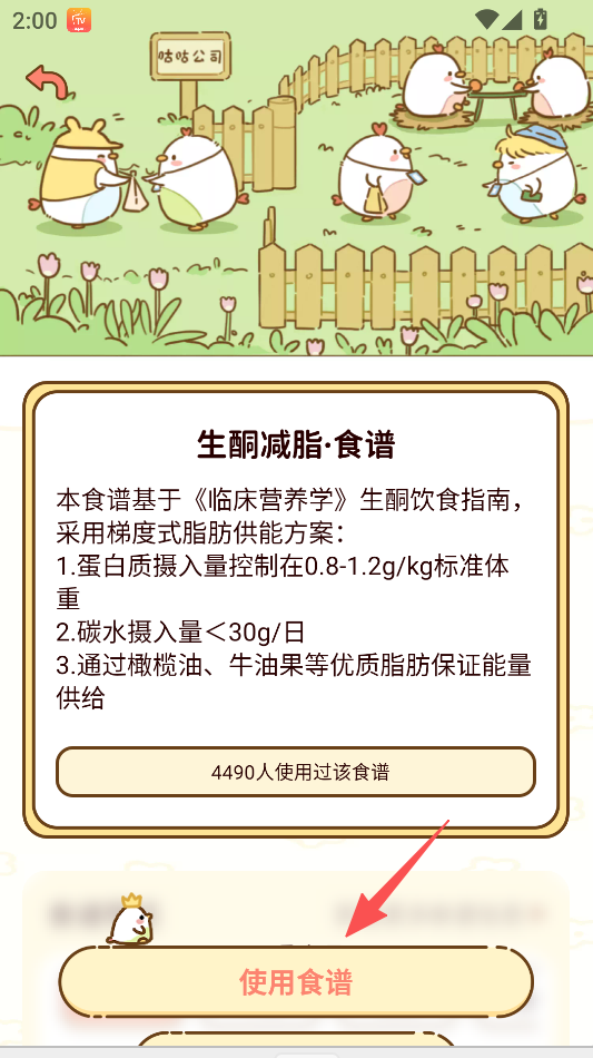 3、在生酮减脂食谱详情页,点击使用食谱,获取饮食方案。