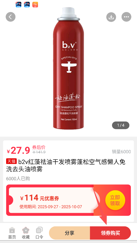2、在品类页面,点击想要的商品,比如祛油干发喷雾。