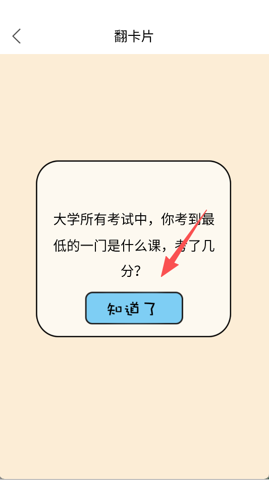 3、翻卡片显示问题后,点击知道了,完成真心话互动。