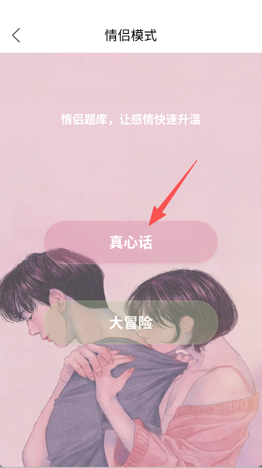 1、进入情侣模式页面,点击真心话,进入玩法界面。