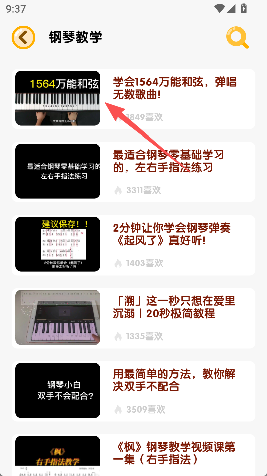 3、进入钢琴教学页面,选择教学视频,观看学习弹奏技巧。