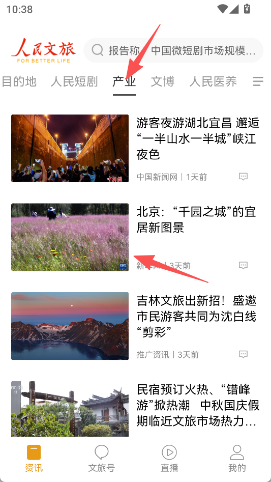 1、频道分类清晰直观,目的地、产业等标签醒目,便于快速定位到感兴趣的文旅资讯领域,提升浏览效率。